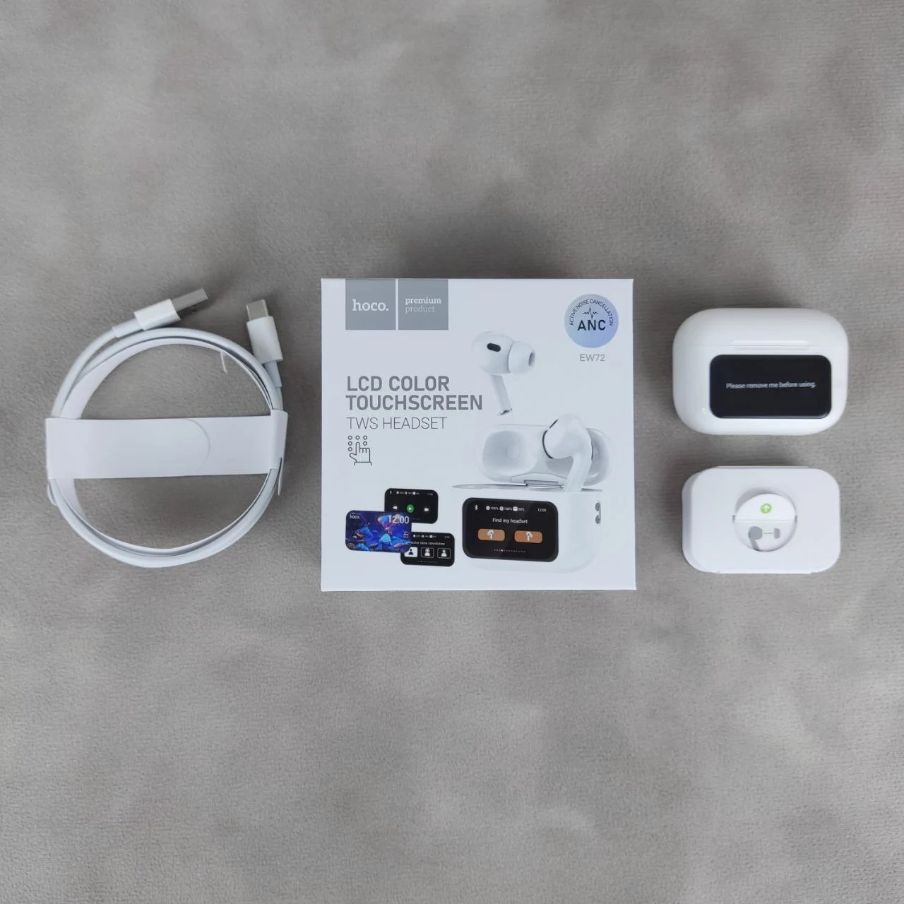 Наушники Hoco EW72 выполнены в элегантном белом цвете, который подойдёт каждому пользователю. В комплекте с наушниками поставляется удобный кейс с сенсорным экраном, который не только защищает устройство, но и позволяет легко управлять его функциями.